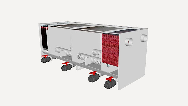 Na verwijderen van het grove vuil door het drumfilter komt het water terecht in dit biologische filter. De combinatie van Red Label Drumfilter en Red Label Moving Bed Filter zijn dusdanig op elkaar afgestemd dat een stabiele bacteriecultuur is gewaarborgd en de afbraak van schadelijke stoffen optimaal verloopt. Bewegend Bedfilters worden ook geleverd in een vaste combinatie met een drumfilter. Deze 2 filters optimaal verwerkt in één compacte behuizing noemt men een Combifilter.